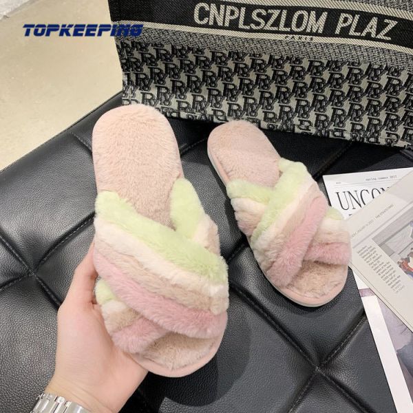 1D0015 Wholesale Fashion Fur Furry Woman Slipper Indoor Winter Woman Slipper